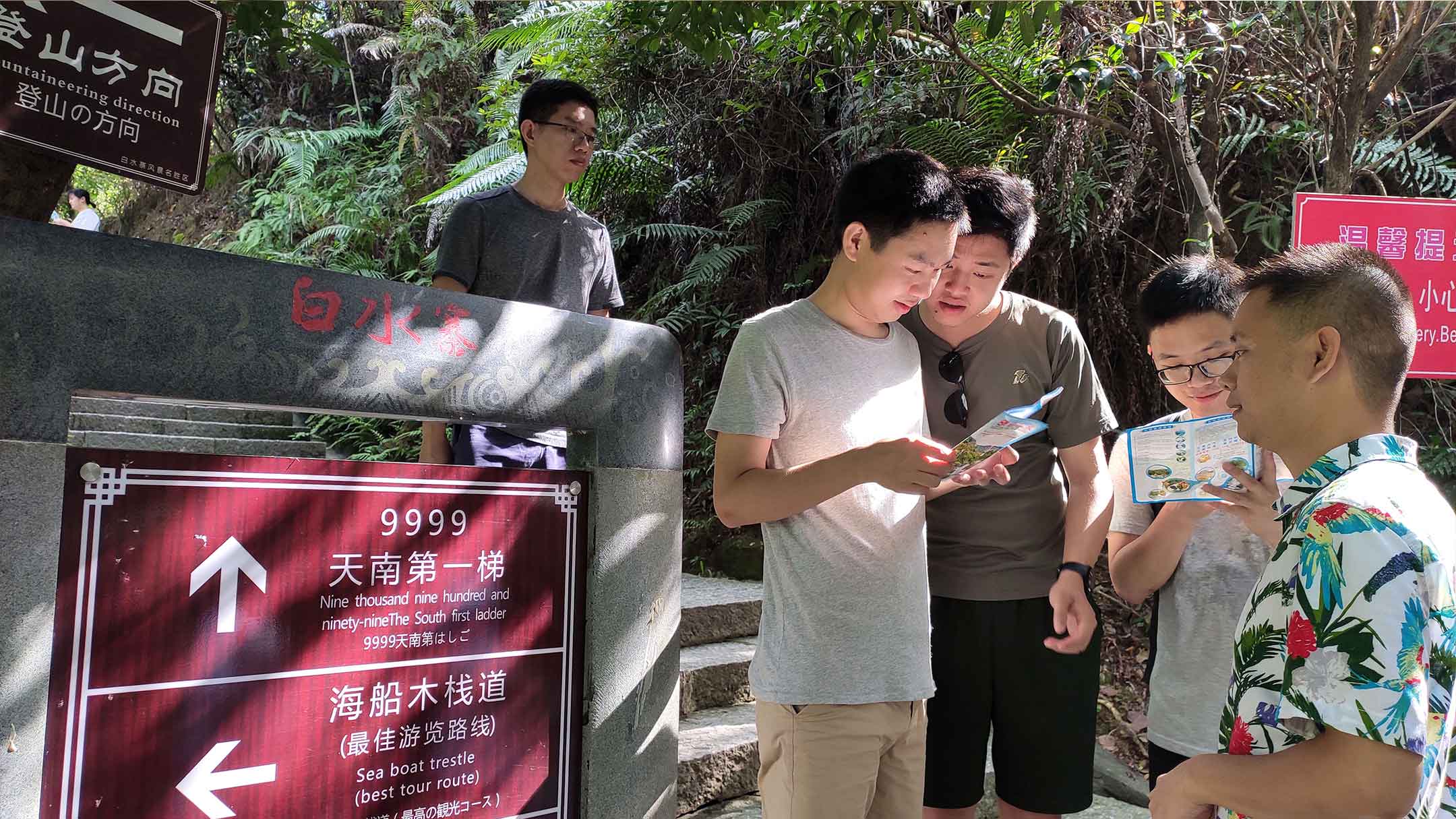 第二天一大早,云网金服登山队伍启程前往白水寨景区进行登山活动,其中三名弱电工程师和一位新入职的财务助理完成了9999阶的登顶壮举,这需要极其顽强的意志力和毅力,也印证了我司技术工程师是拥有着强大的精神意志力,这是在无数个项目压力下积累而成的宝贵财库,小编在2199阶就跟随部分队员一同下山了,敬佩这四位登顶勇士,他们的精神是很值得我们学习。