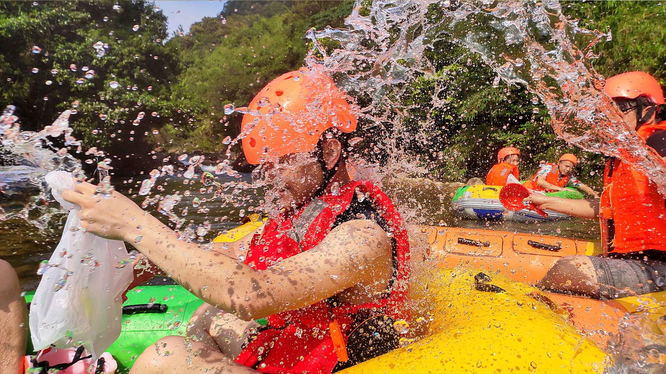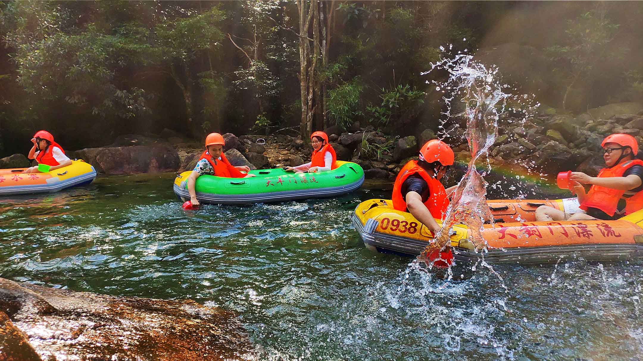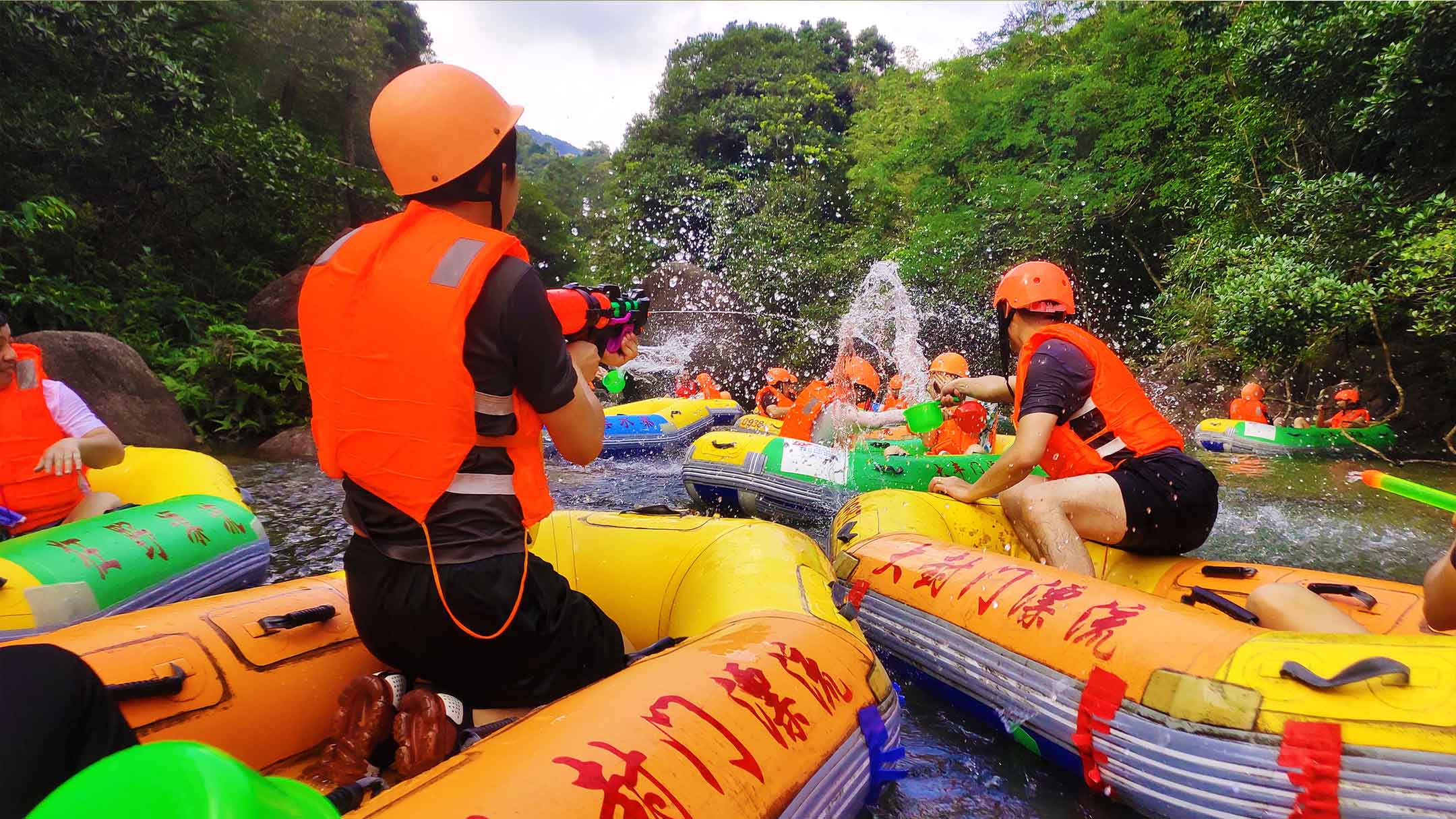完成9999阶的登顶壮举后团建活动就结束了吗?当然不是,最精彩最刺激的活动现在才开始,下午团建最终活动:大丰门无敌漂流!