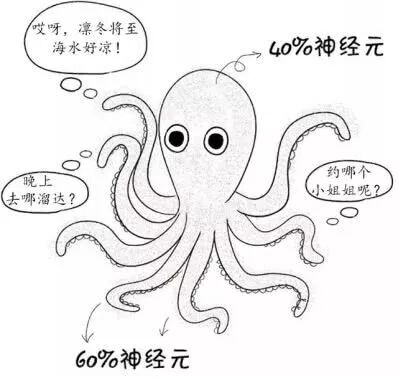 章鱼作为无脊椎动物中智商最高的一种动物,拥有巨量的神经元,其中脑部占有40%,其余60 %全部分布在八条腿(腕足)上。利用这样的结构,章鱼捕食时就形成“多个小脑+一个大脑”的分布式计算机制,提高了活动灵敏性。