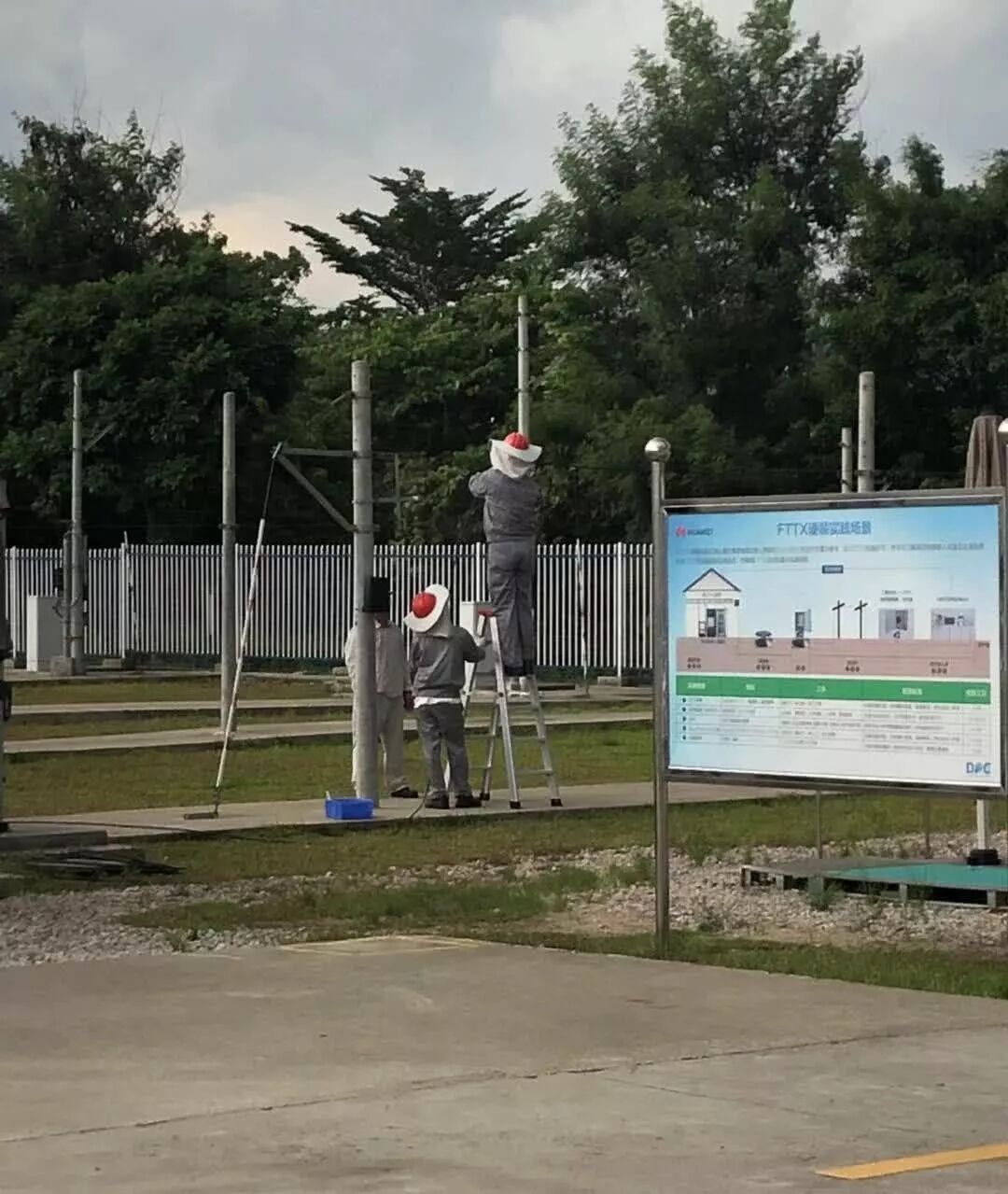 现场观察者网注意到,就有在炎热天气下进行硬装实践作业的华为员工。华为介绍,会根据每个员工的作业情况进行考核。虽然培训每个员工成本不菲,但这一步在华为眼里非常重要。目的是让刚入职的研发新员工在艰苦环境中参加硬装实践,去熟悉现实中的华为无线产品硬件,不做空想家不闭门造车。