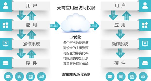 首先,字节级复制的核心引擎工作时,并没有复杂的数学运算,对生产机计算资源占用可以忽略,仅仅是旁路捕获数据。其次,所有的数据都是从内存中捕获,并不涉及生产主机存储的读取操作,因此数据复制过程不占用主机的存储IO资源。最后,基于字节级的数据复制粒度最小到字节,因此对于带宽资源的要求极低,是适应于异地远距离、及面向未来的混合IT环境和云化架构的一种复制方式。