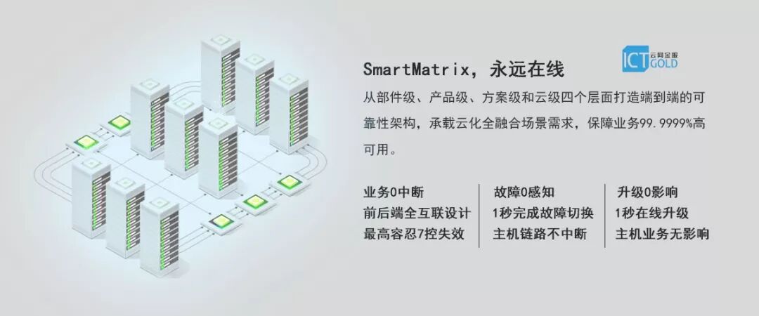 第二,SmartMatrix全互联架构。SmartMatrix全互联高可靠架构实现了RDMA前端卡、控制器以及盘控的全互联,确保单系统最多可容忍7个控制器同时失效的时候,业务仍然恒稳在线。