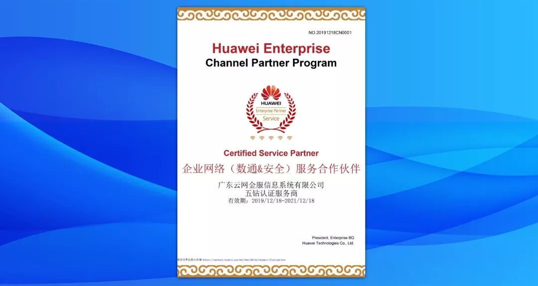 云网金服12月22日消息,我司由:华为《企业网络(数通&安全)服务合作伙伴四钻认证服务商》晋升为:华为《企业网络(数通&安全)服务合作伙伴五钻认证服务商》,继续为广大客户提供更好的服务条件!