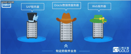 而且,传统的IT架构中,硬件服务器一般都会被设计成为单一固定的角色,比如SAP服务器、Oracle数据库服务器,Web服务器等等。