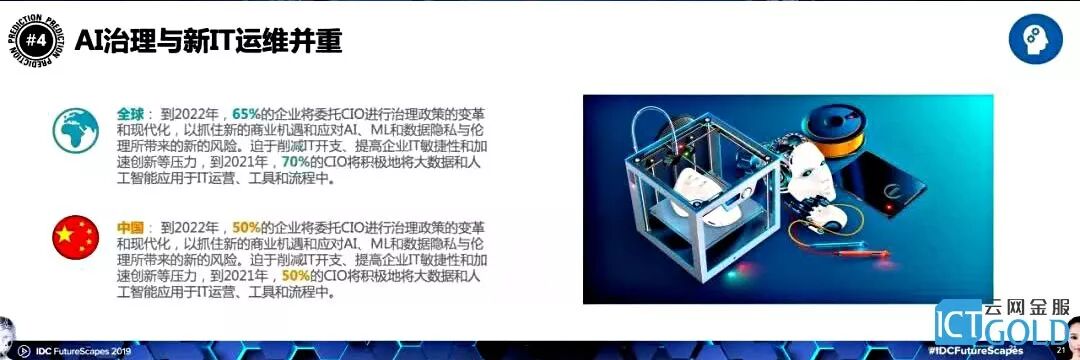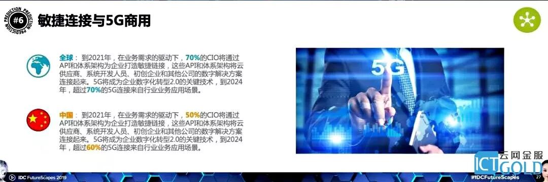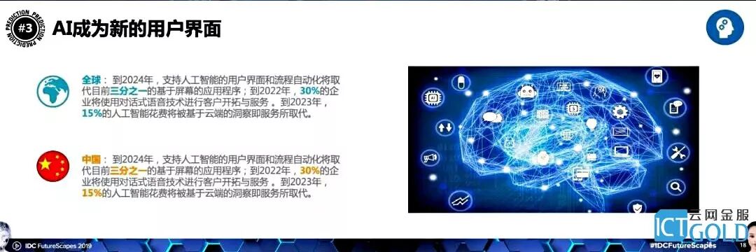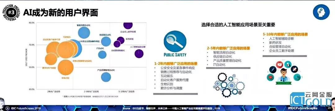 IDC预计,到2024年,基于人工智能的IT项目实施以每年至少7%的增长推动新一轮的业务流程重构,这需要具有深厚行业背景的公司提供专业的技术服务。2020年,5G牌照的发放和商用将会使数据的收集和流通变的更加简单和通畅,AI和5G的结合可以更快的推动如自动驾驶、平安城市的发展。