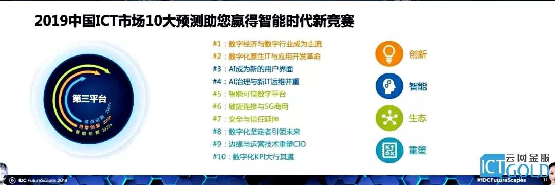 IDC中国于今日在深圳举办了一年一度的中国ICT市场趋势论坛。届论坛以“创新x 智能+ 规模∞” 为主题,与现场逾300位嘉宾、20余业内媒体代表共同探讨全球趋势。