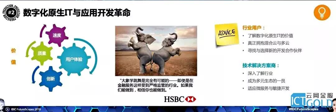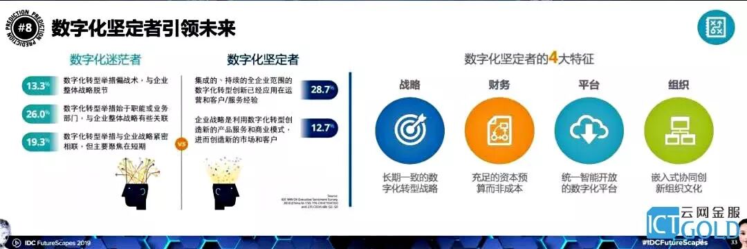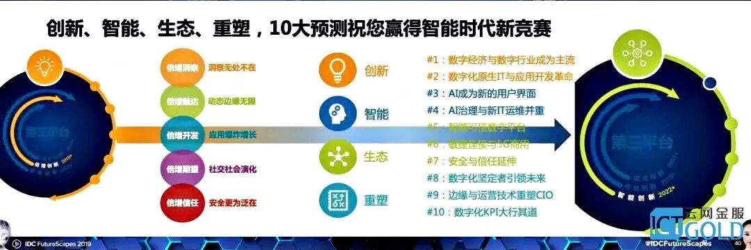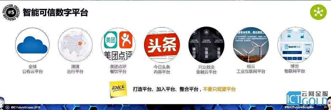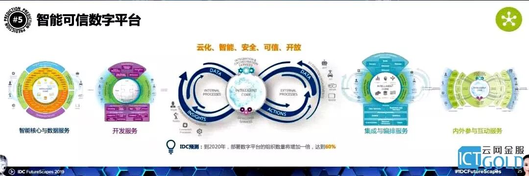 IDC预计,到2020年, 全球60%的企业将设计/部署企业数字化平台,并将其作为最新IT核心工具来开发和管理核心IP与数据,同时整合云平台、产业平台、数据和代码社区、合作伙伴和客户等资源。