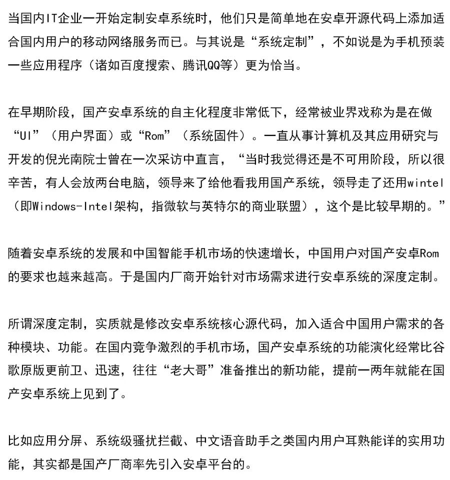 正是这一现实,成为了中国发展自主化手机操作系统的契机,也为今天华为公司遭受美国打压时奋起反击奠定了基础。