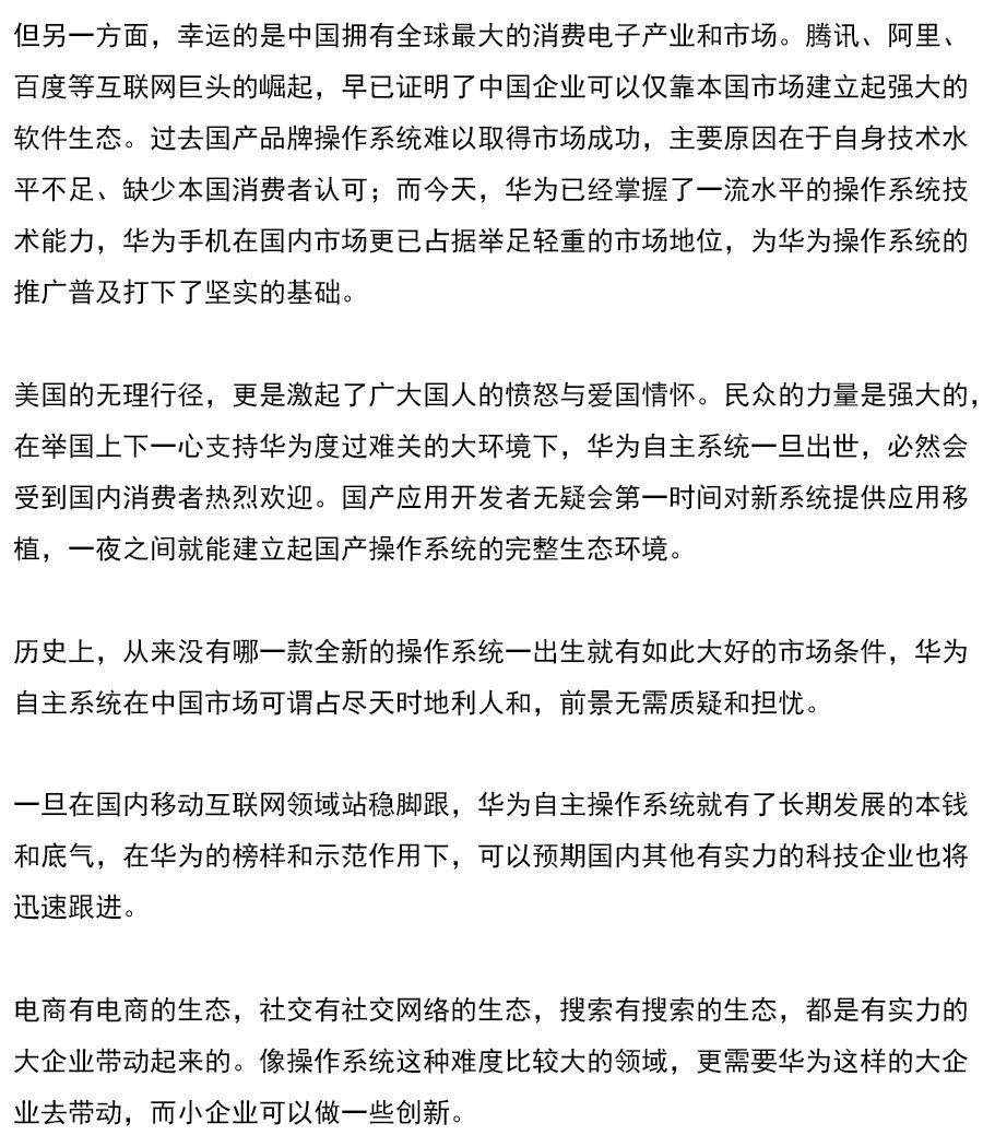 而且华为自主系统必须拥有自己的一套“”应用套件“,就像谷歌应用套件一样,我们无法安装微信、支付宝等等这些必须软件,就是国外消费者无法安装Facebook、google等。