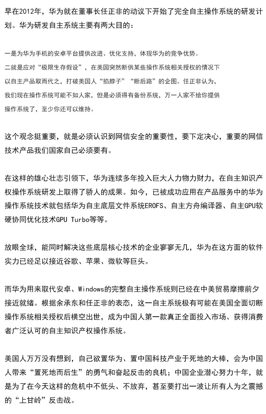 美商务部对华为的禁令发出后,由于美国谷歌、微软公司已停止对华为的安卓、Windows等操作系统授权,华为手机、笔记本电脑正面临“无系统”可用的威胁。