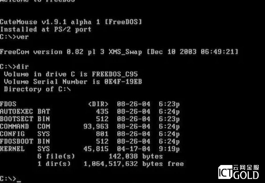 DOS 操作系统的界面,需要你输入完整的指令才能运行应用