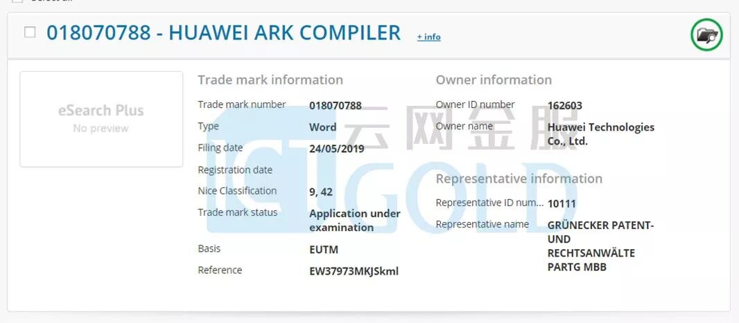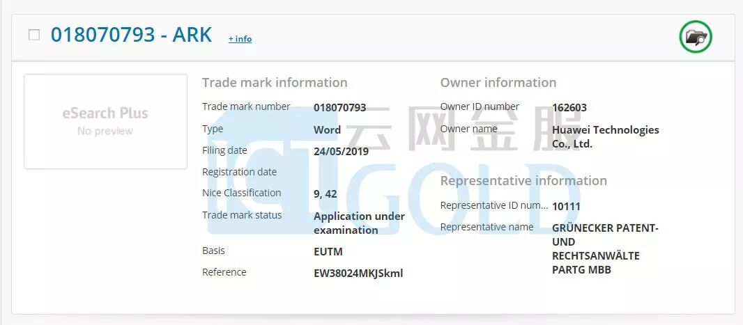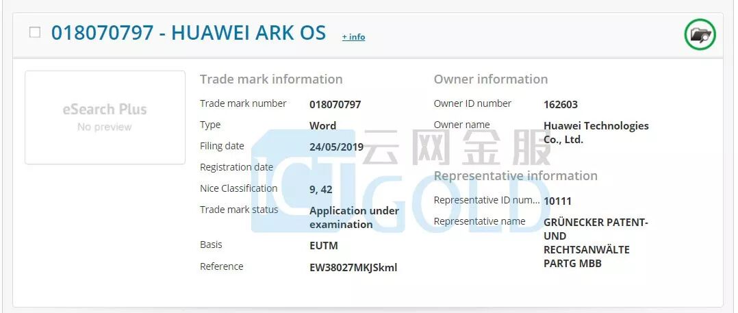 5月28日,云网金服在查询欧盟知识产权局(EUIPO)网站发现,该机构于5月24日收到华为提交的多项商标申请。